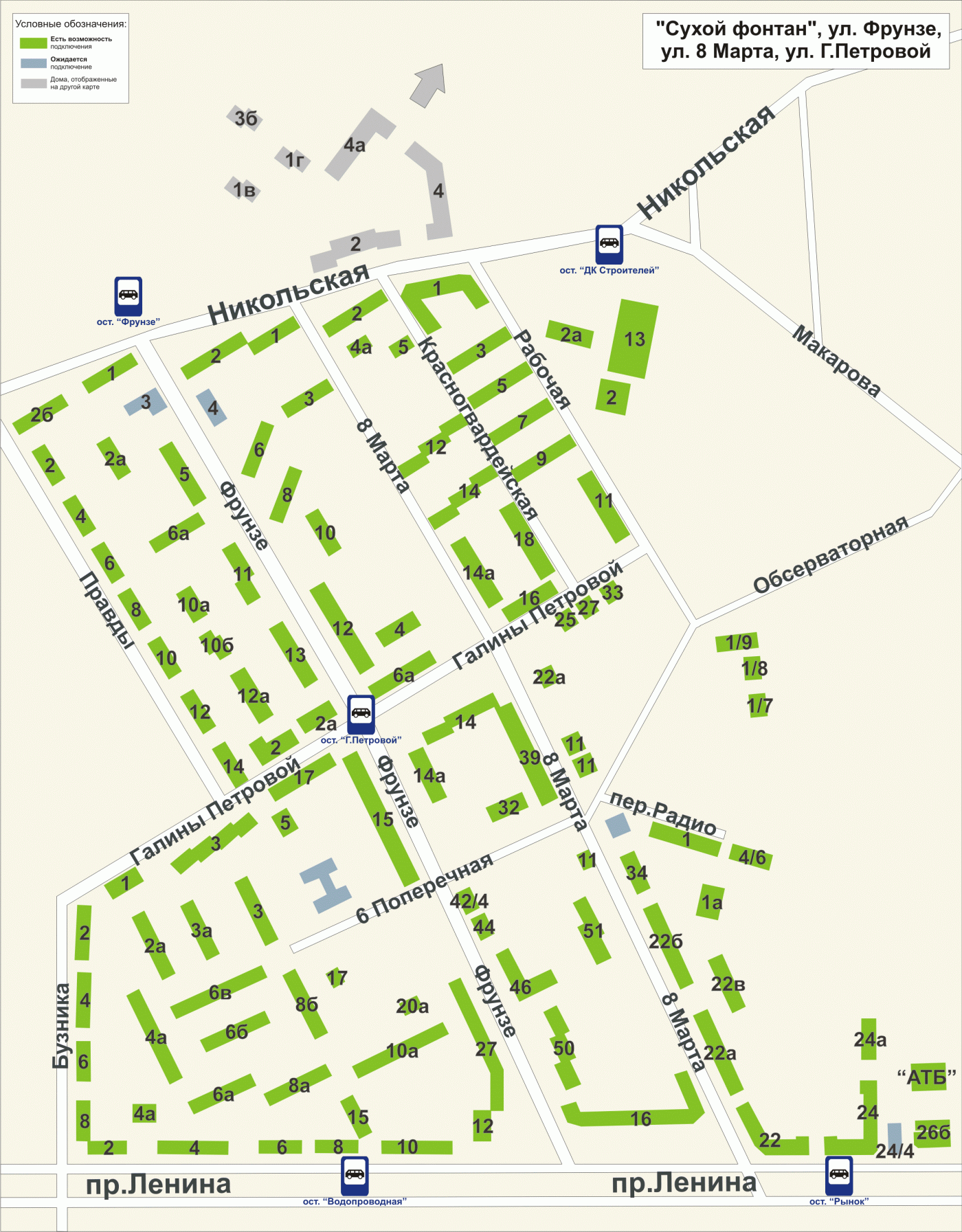 "Сухой фонтан", ул. Фрунзе, ул. 8 Марта, ул.Г.Петровой