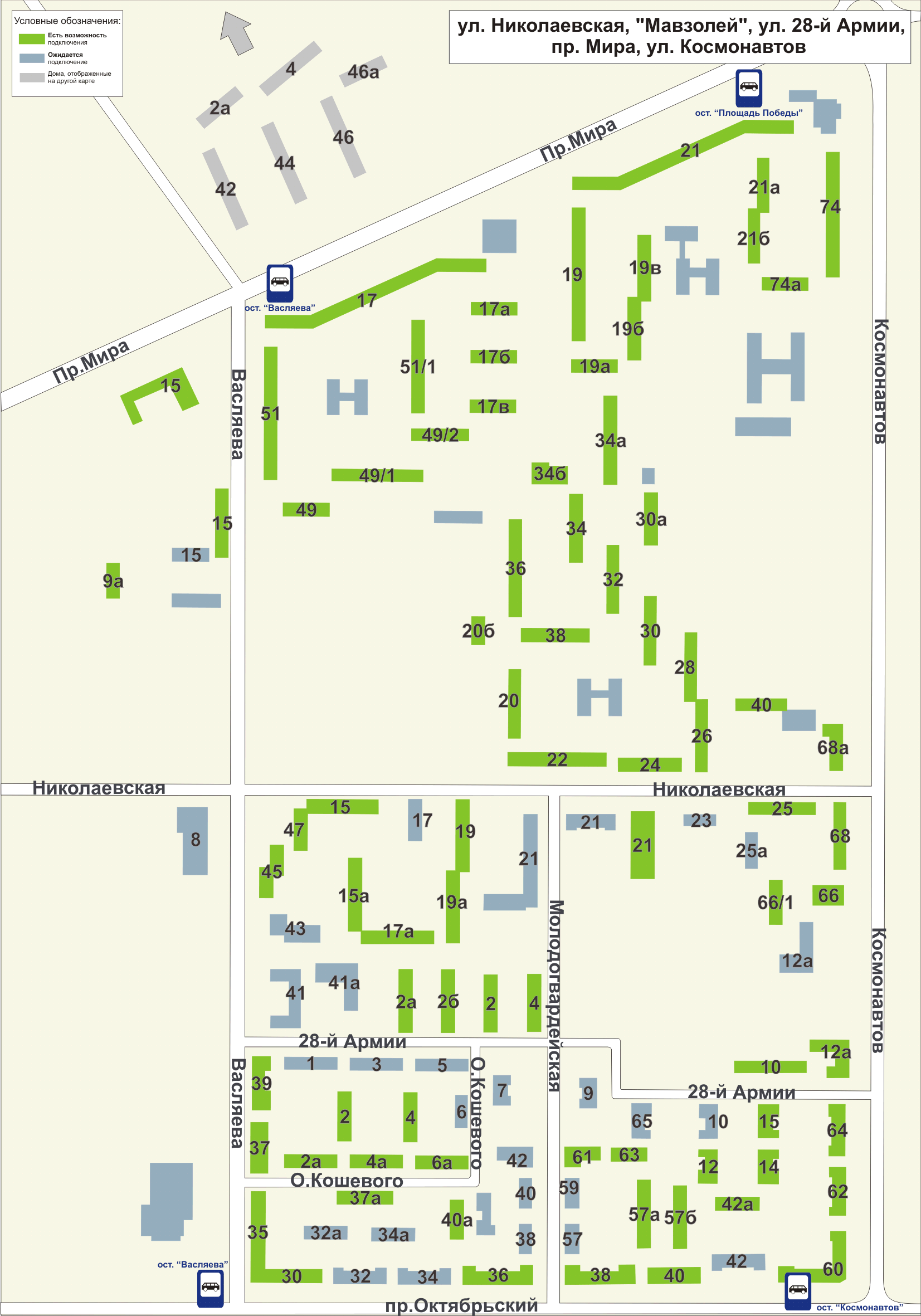 ул. Николаевская, "Мавзолей", ул. 28-й Армии, пр. Мира, ул. Космонавтов
