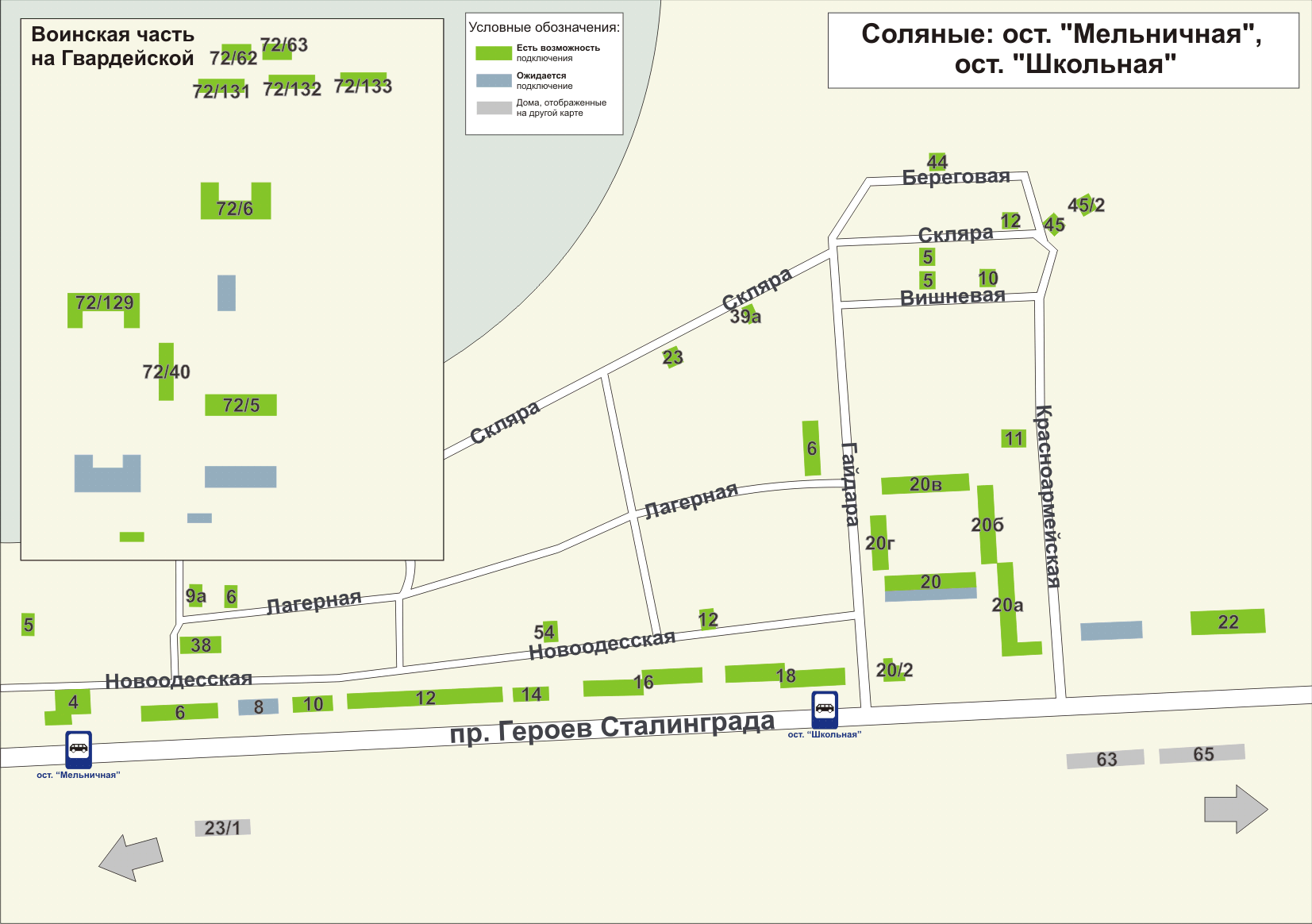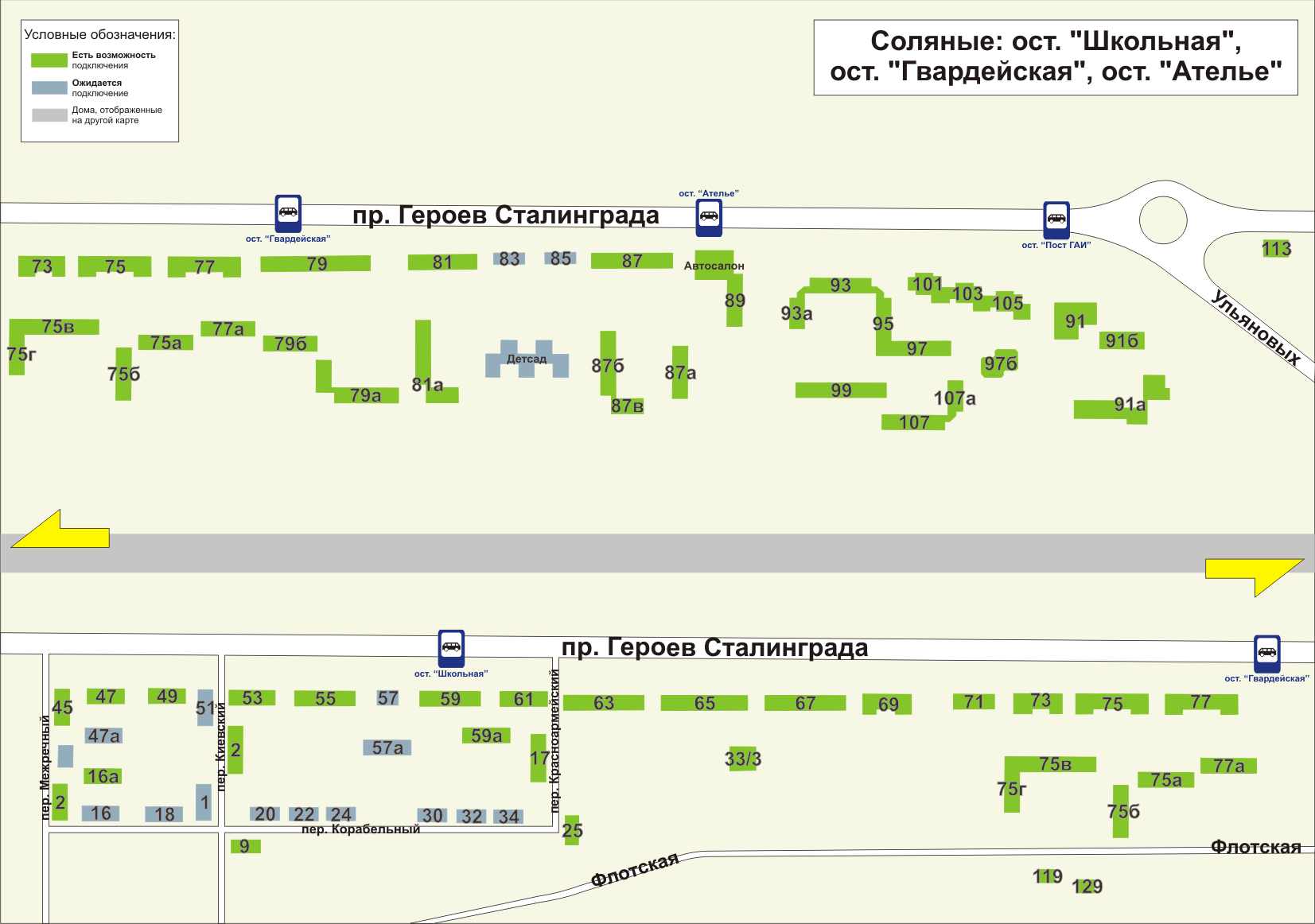 Соляные: ост. "Школьная", ост. "Гвардейская", ост. "Ателье"