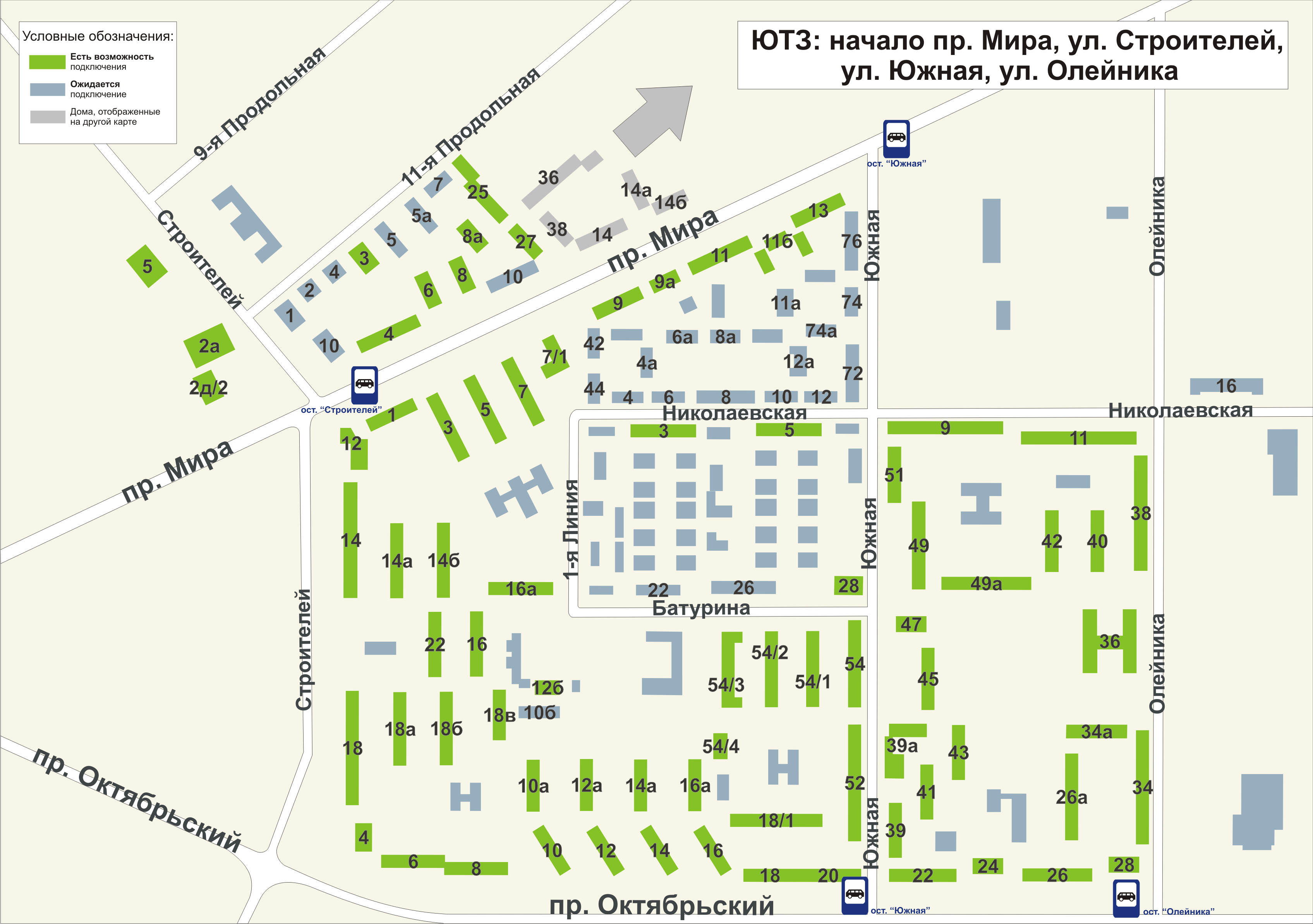 ЮТЗ: начало пр. Мира, ул. Строителей, ул. Южная, ул. Олейника