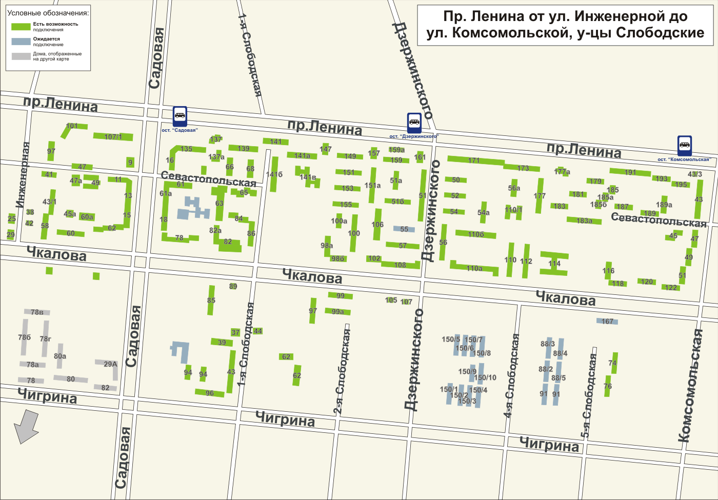 пр. Ленина от ул. Инженерной до ул. Комсомольской, у-цы Слободские