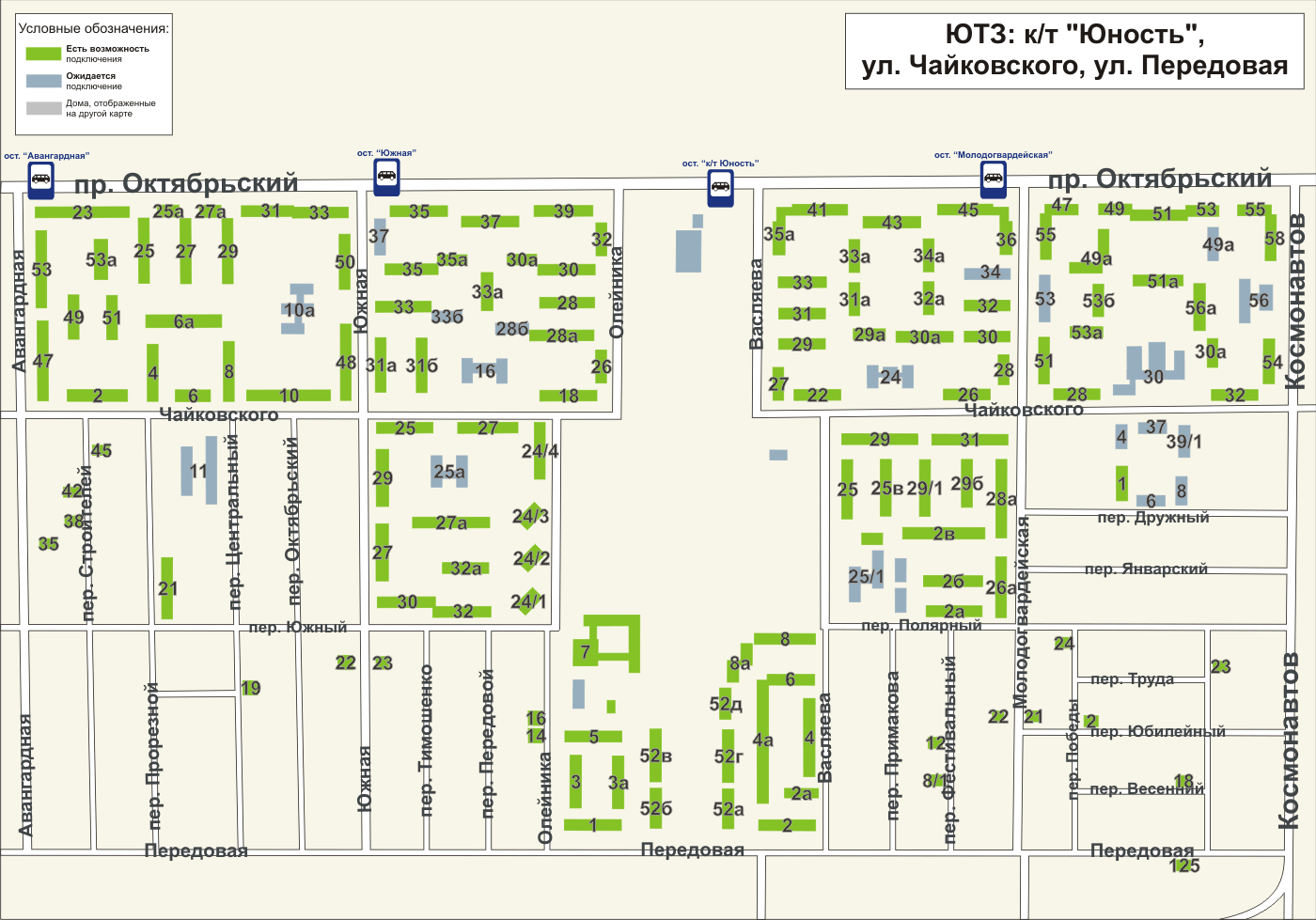 ЮТЗ: к/т "Юность", ул. Чайковского, ул. Передовая