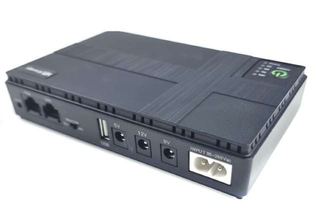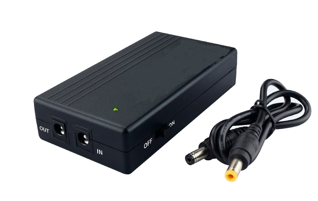 Оптимальним варіантом є підключення спеціальних ДБЖ з низьковольтовим виходом, ще їх називають mini UPS. Вмикається такий ДБЖ дуже просто – між блоком живлення пристрою та самим пристроєм.